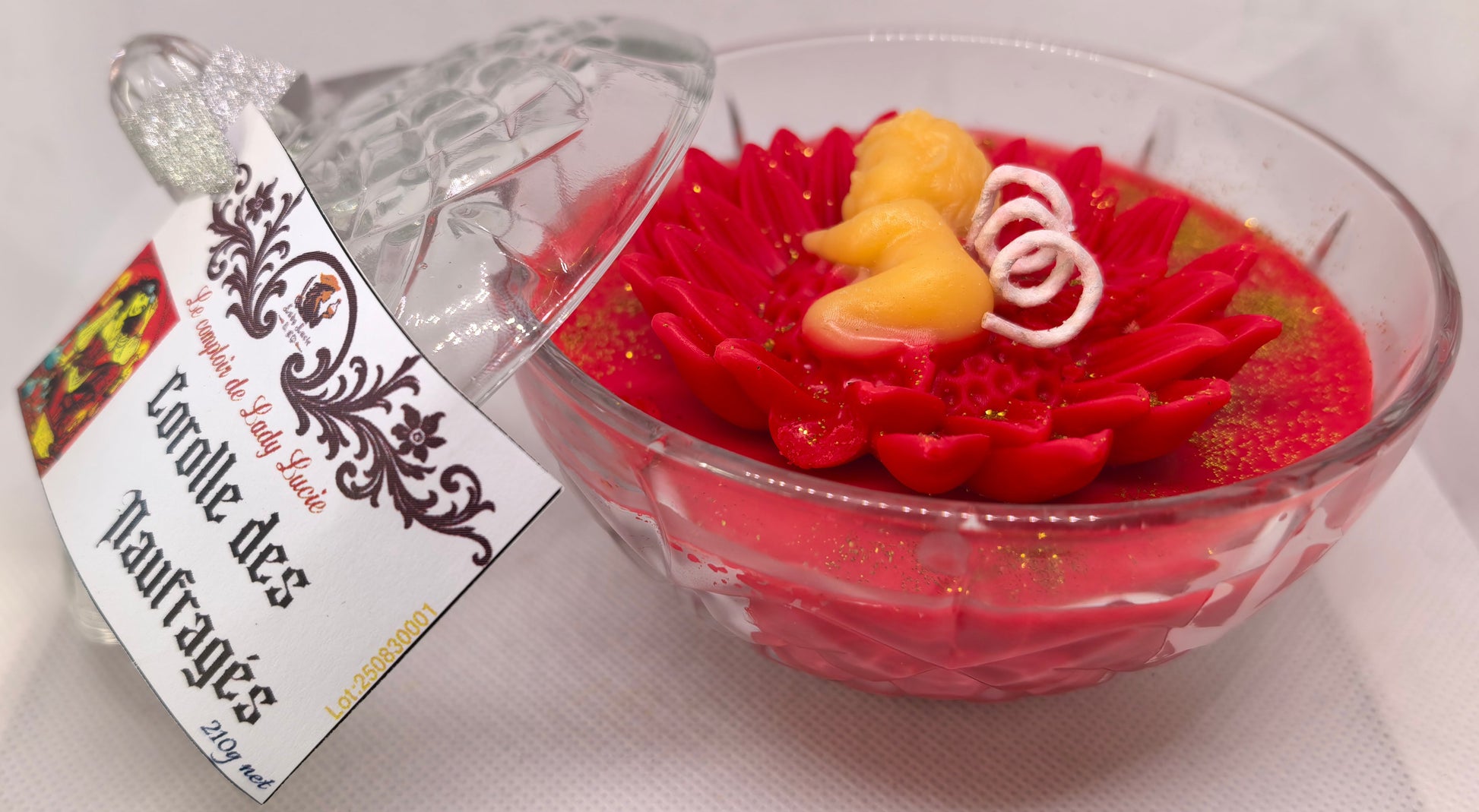 La Corolle des Naufragés est le souvenir de ce lieu secret. Sa forme évoque la fleur marine recueillie après l’épreuve, sa teinte lavande rose rappelle le ciel au lever du jour, quand tout redevient possible, et son parfum murmure la promesse d’un calme retrouvé.
